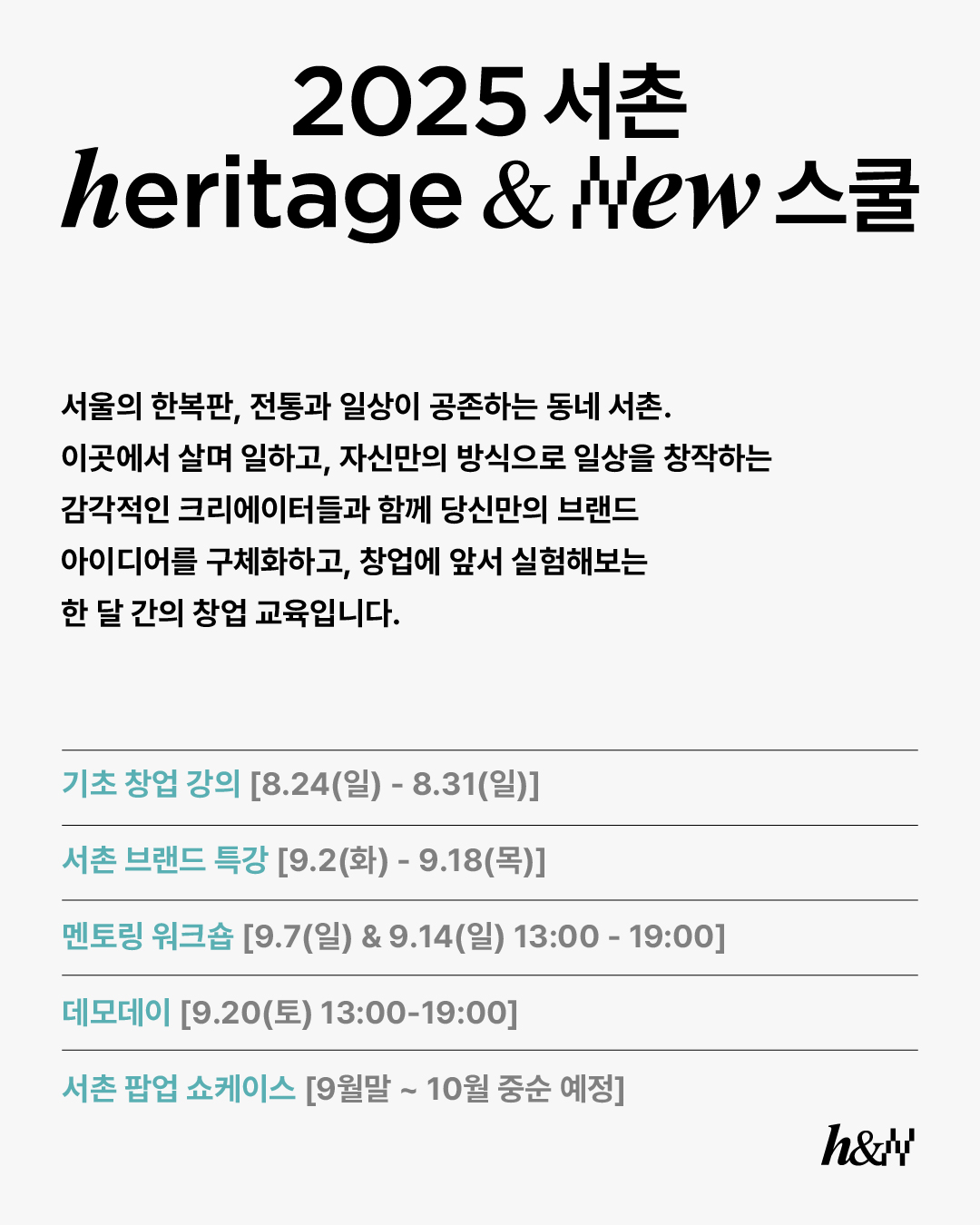 서촌 heritage&New 스쿨에서는, 서촌 브랜드들의 지식과 경험을 나눕니다.